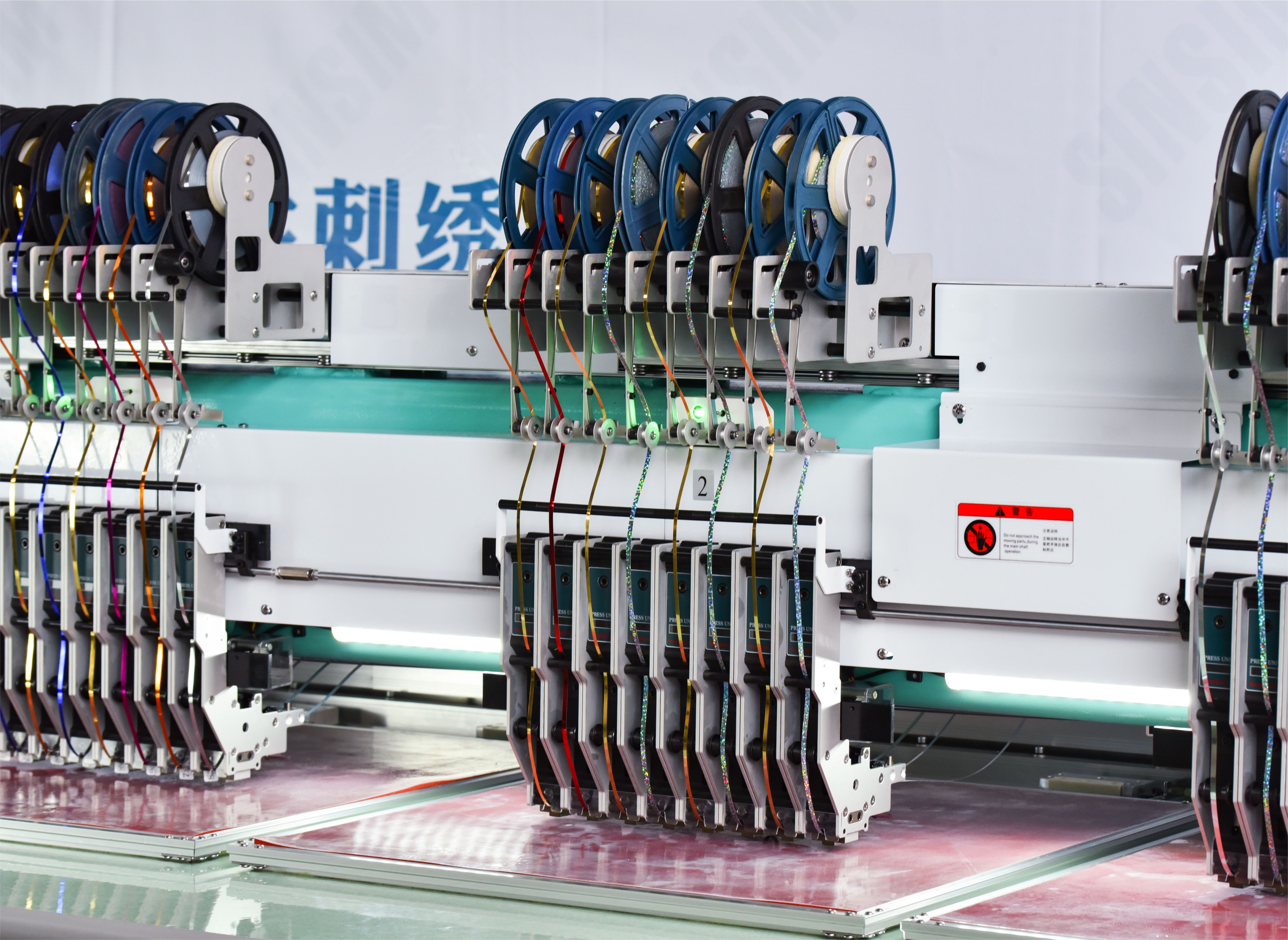 混合盤(pán)帶繡系列集合平繡、 纏繞繡、繩繡、 扁帶繡、珠片繡等功能, 廣泛應(yīng)用于床上用品、童裝、女裝等行業(yè),功能全面,性能全面。